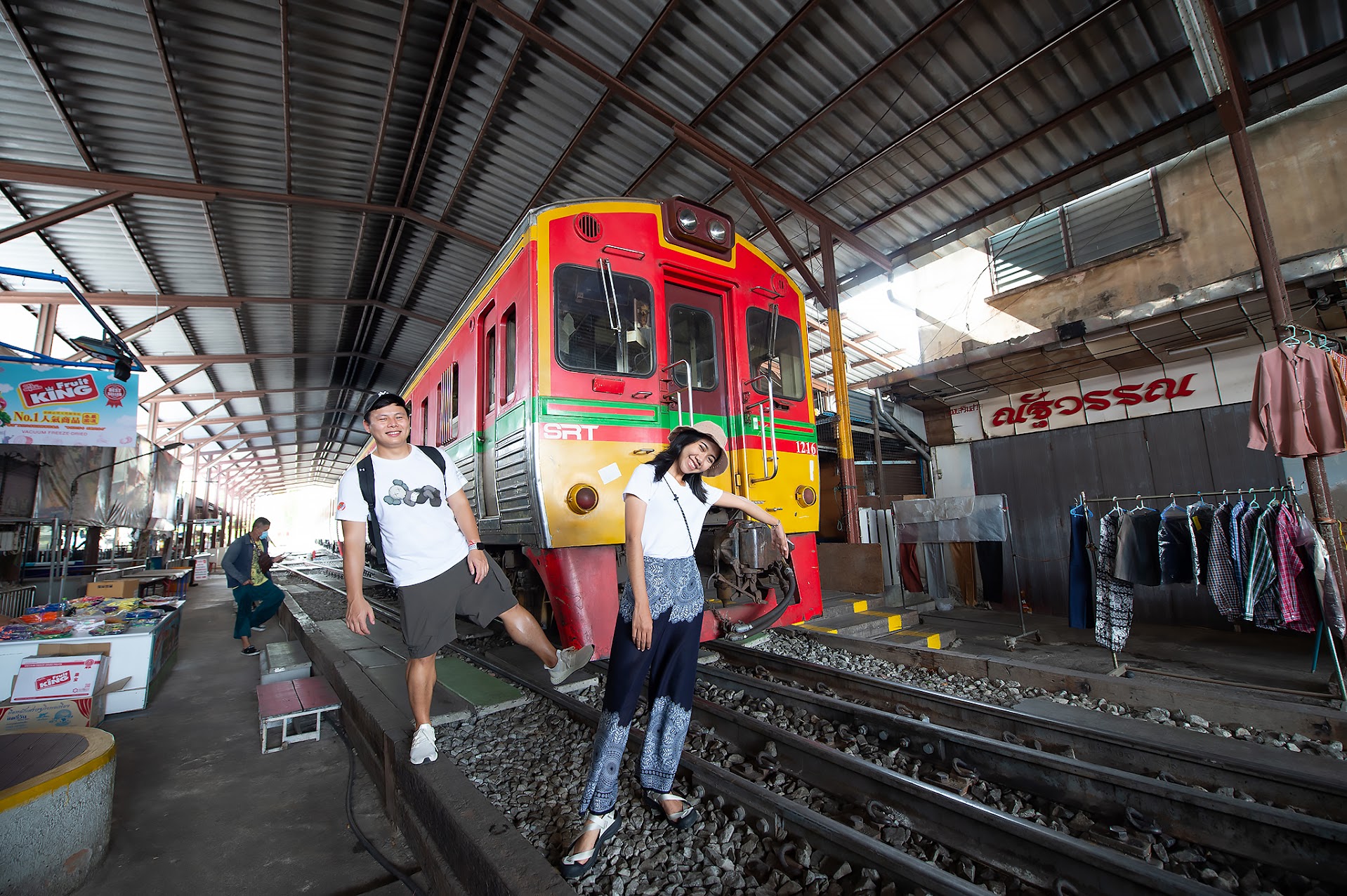 参观著名的铁路市场,那里的摊贩就在火车轨道上摆摊