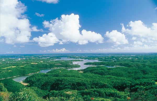 横山展望台,远眺以珍珠养殖闻名的英虞湾。错综复杂的 ria 海岸线和珍珠养殖筏呈现出融合自然和人类活动的景观。