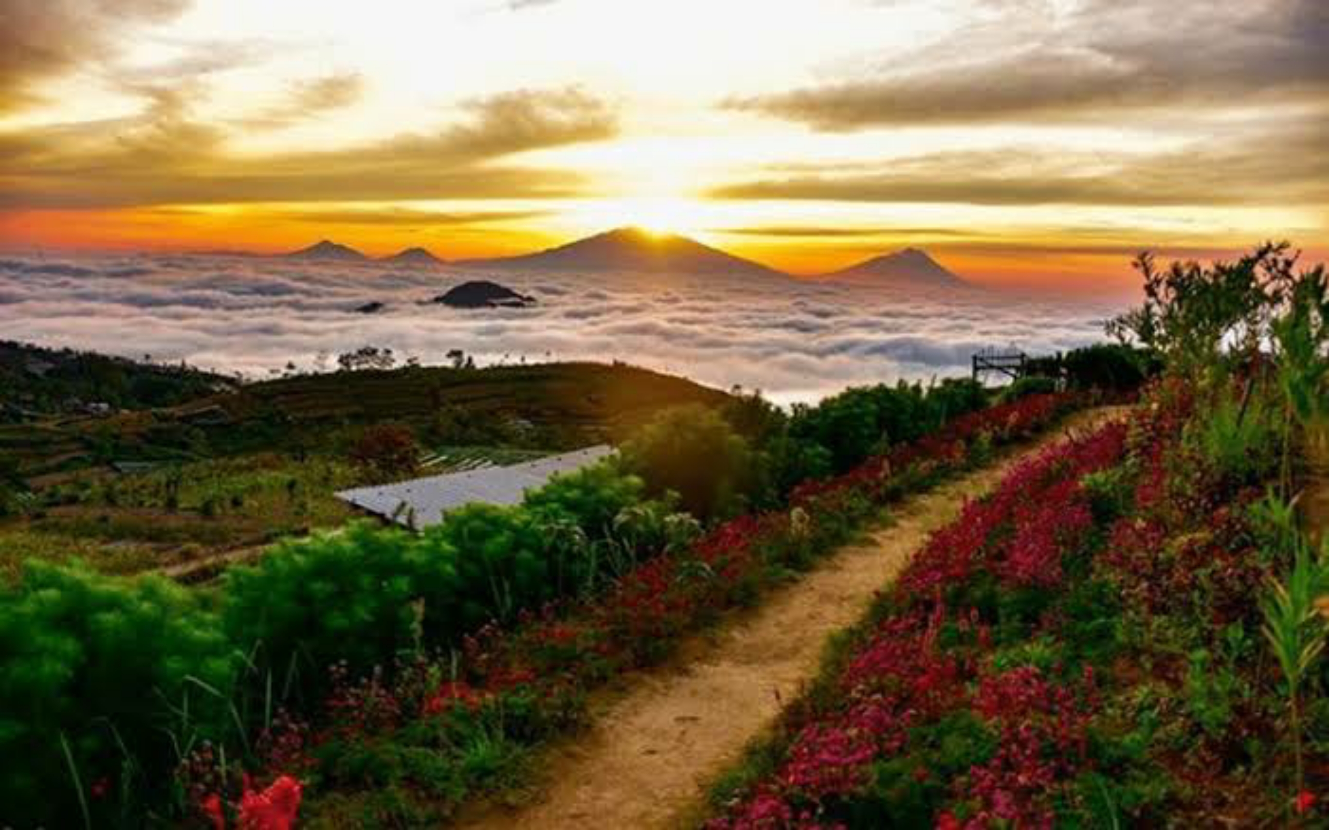 * 以雄伟的 Merapi、Merbabu、Andong 和 Telomoyo 山脉为背景,营造出令人惊叹的景色。