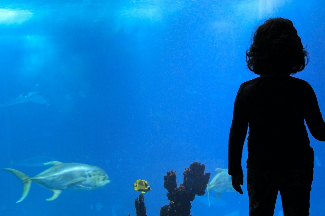 孩子在水族馆看鱼