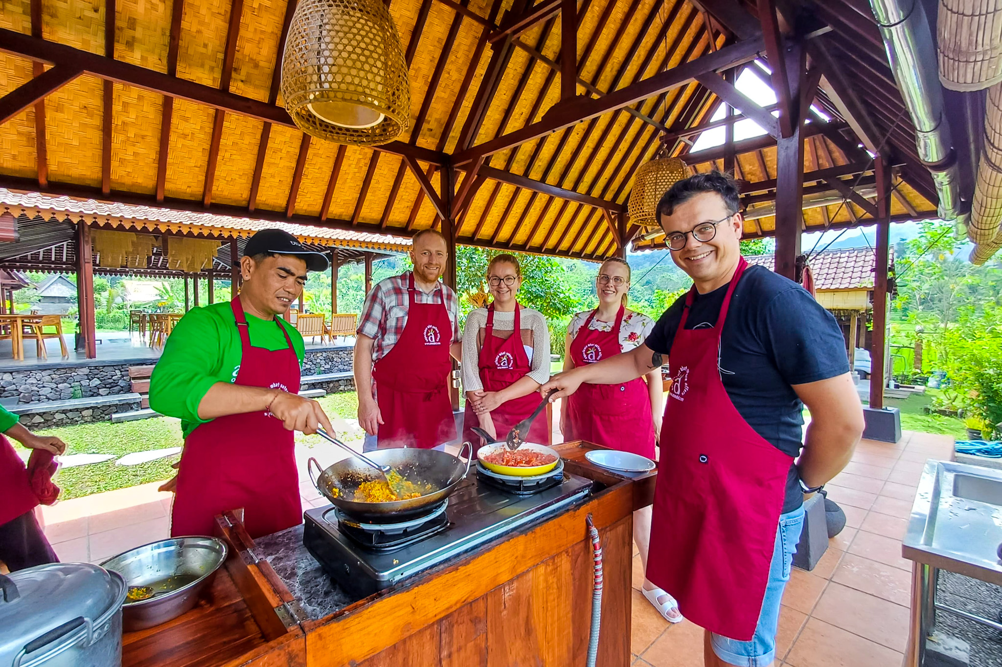 该计划将在导游的带领下围绕有机花园进行花园之旅,同时采摘新鲜水果和蔬菜供您稍后烹饪。在花园之旅中,您还会发现一些异国情调的种植园,我们的导游将向您解释它们的独特特征和健康益处。随后,我们才华横溢、充满热情的厨师将指导您使用古老的巴厘岛炊具,以传统的巴厘岛烹饪方法进行烹饪。在经历了漫长而有趣的烹饪体验之后,您的努力将会得到回报,您可以一边享用刚刚烹制的美食盛宴,一边欣赏我们郁郁葱葱的花园周围的绿色植物和山丘的壮丽景色!