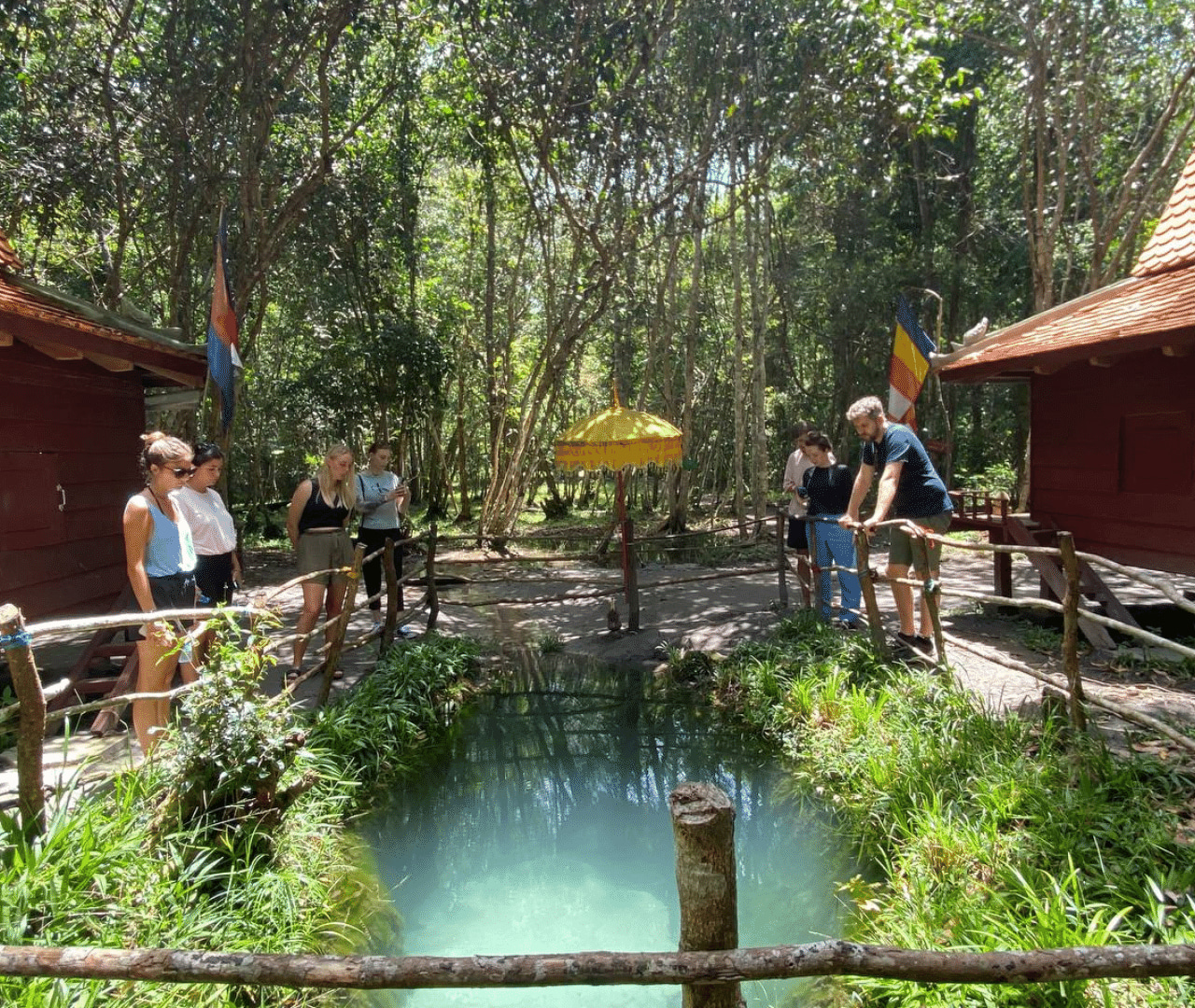 在当地导游的帮助下徒步穿越 Phnom Kulen 的丛林小径