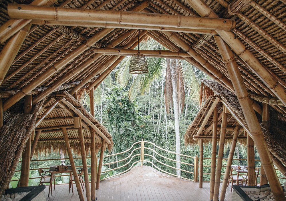 在 Bebek Tebasari 餐厅享用午餐的同时,享受乌布郁郁葱葱的绿色氛围
