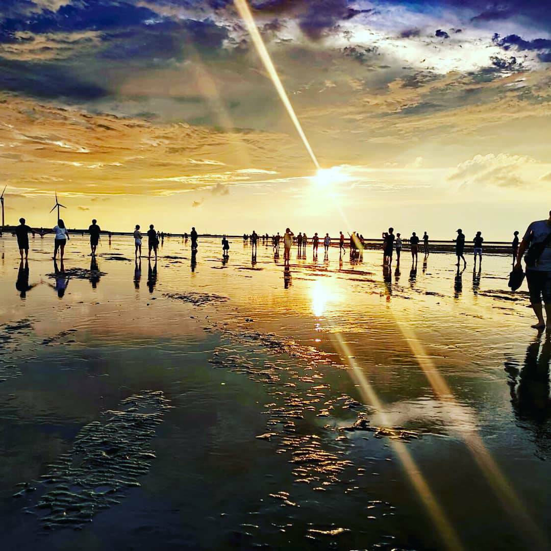 * 原名为高美野生动物保护区,位于清水大甲溪出海口南侧,面积广达 1,500 公顷,拥有丰富的生态及景观资源,无论从任何角度或镜头观赏,橘红色的夕阳搭配着远方巨大的风车,都仿佛置身图画般,是绝对不容错过的经典美景。