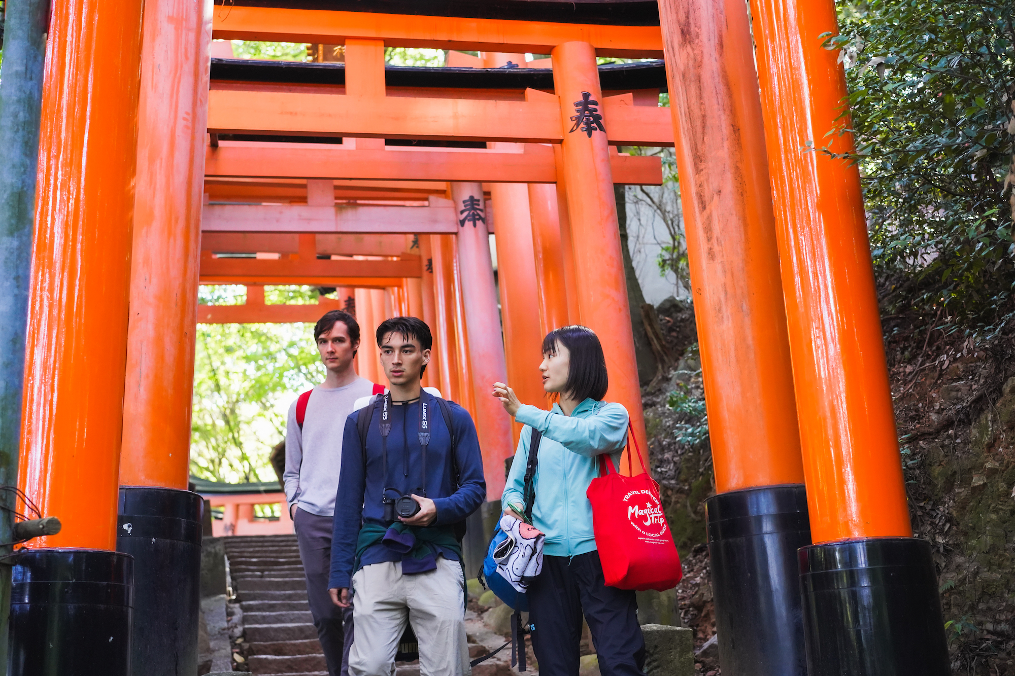-避开拥挤的旅游路线,探索隐藏的徒步路线,参观京都的一座宏伟神社——伏见稻荷大社。不会迷路:导游会负责导航。小团体旅游意味着可以方便地向导游提问
