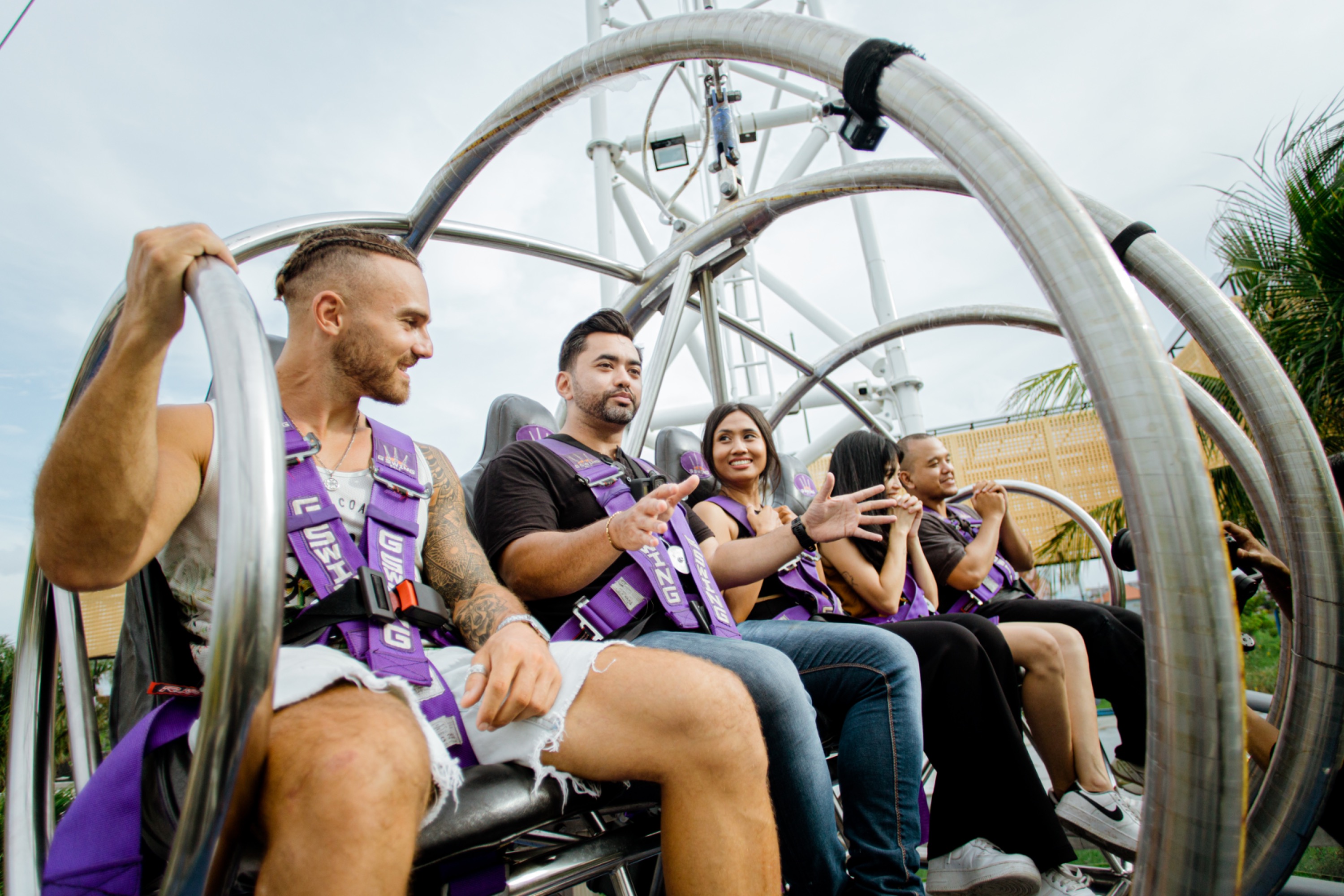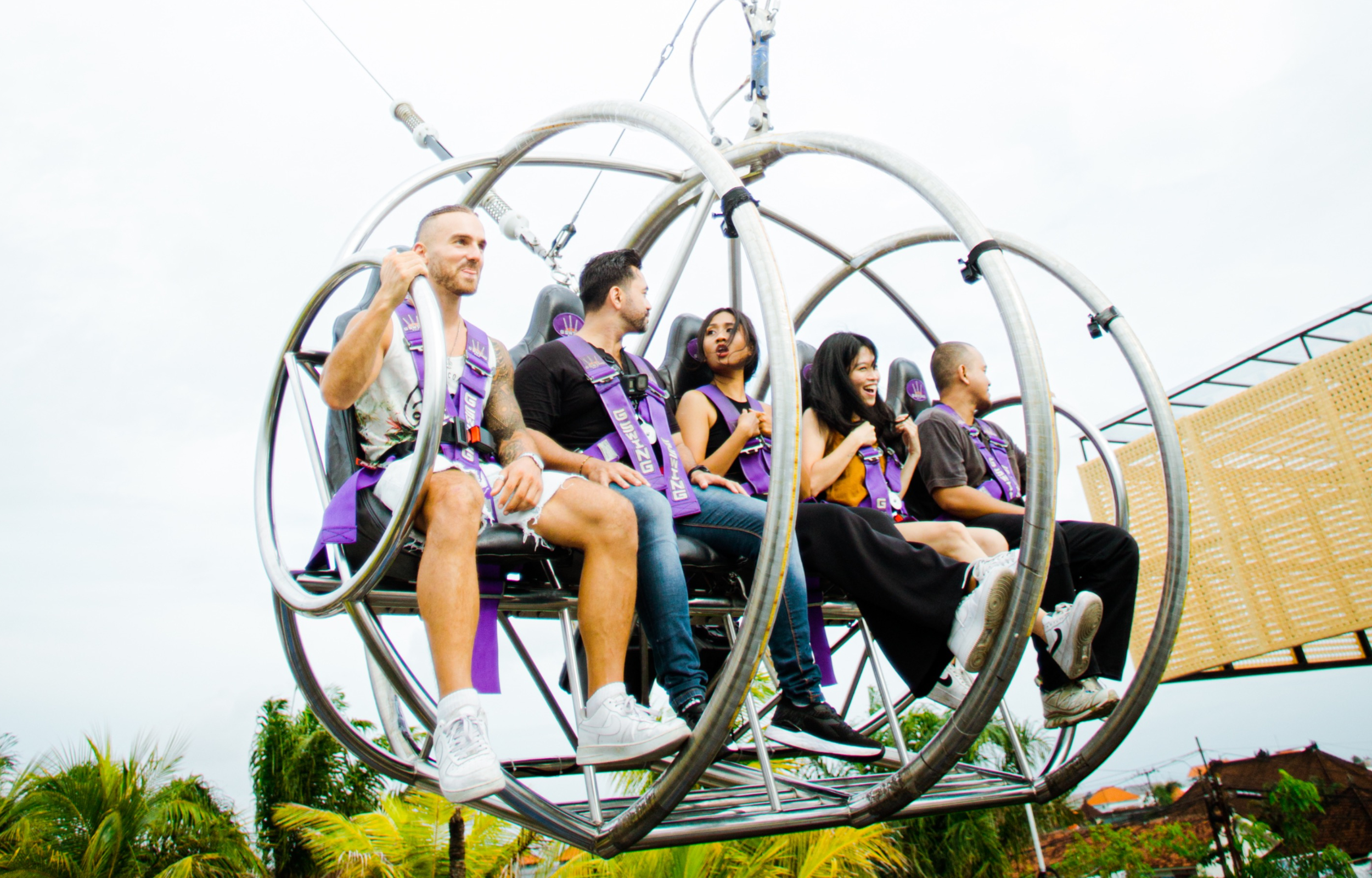 G Swing 是 Cangu 全新的巨型秋千游乐设施!我们位于巴厘岛 Jalan Batu Mejan No. 9 Canggu。 G Swing 是每个人的终极体验。站立高度超过 40 米,摆动时速度可达 100 公里/小时。同时欣赏坎古壮观的日落全景。 G Swing 对于肾上腺素瘾君子来说是一次有趣的骑行,甚至适合所有年龄段的家庭。