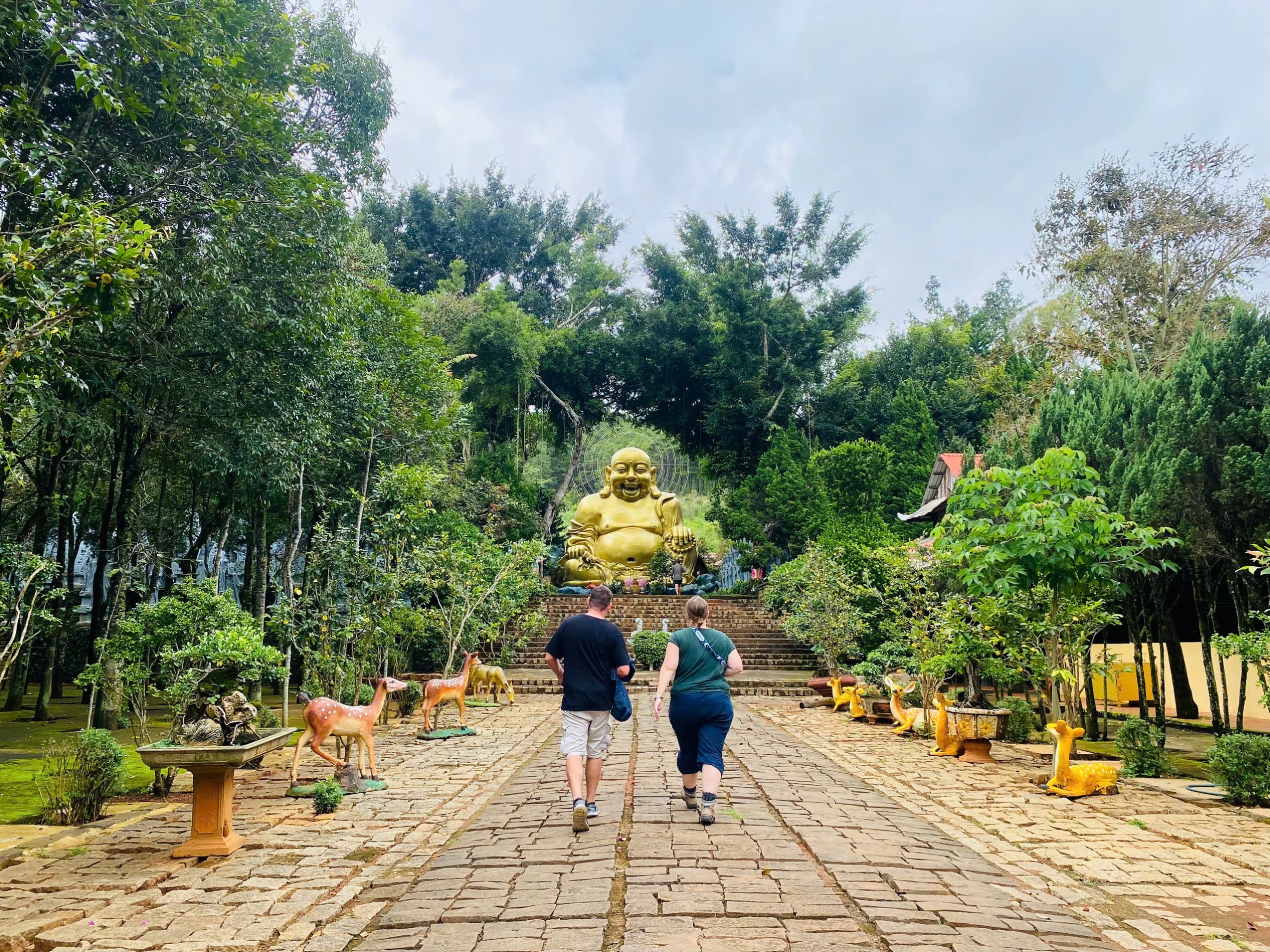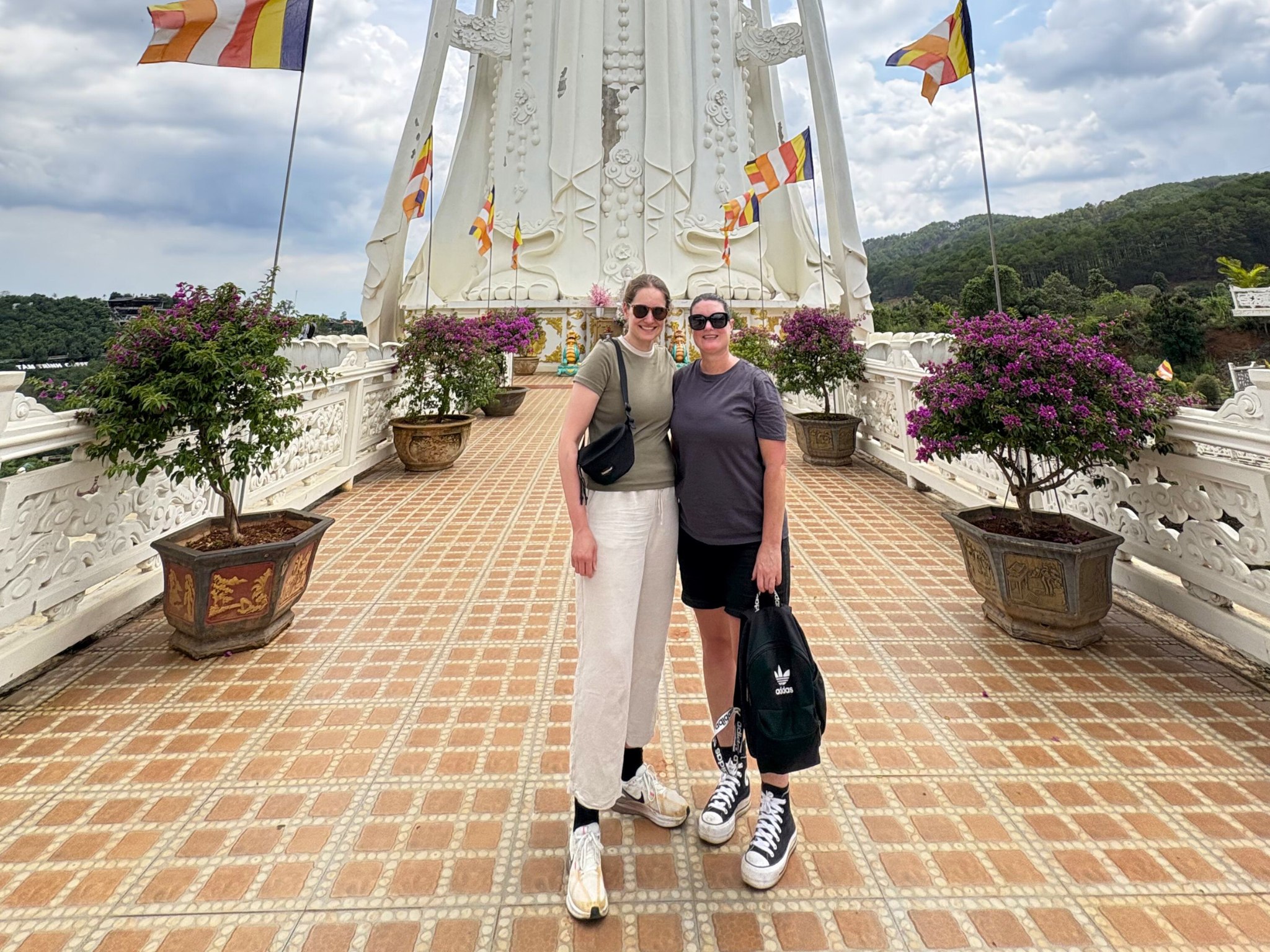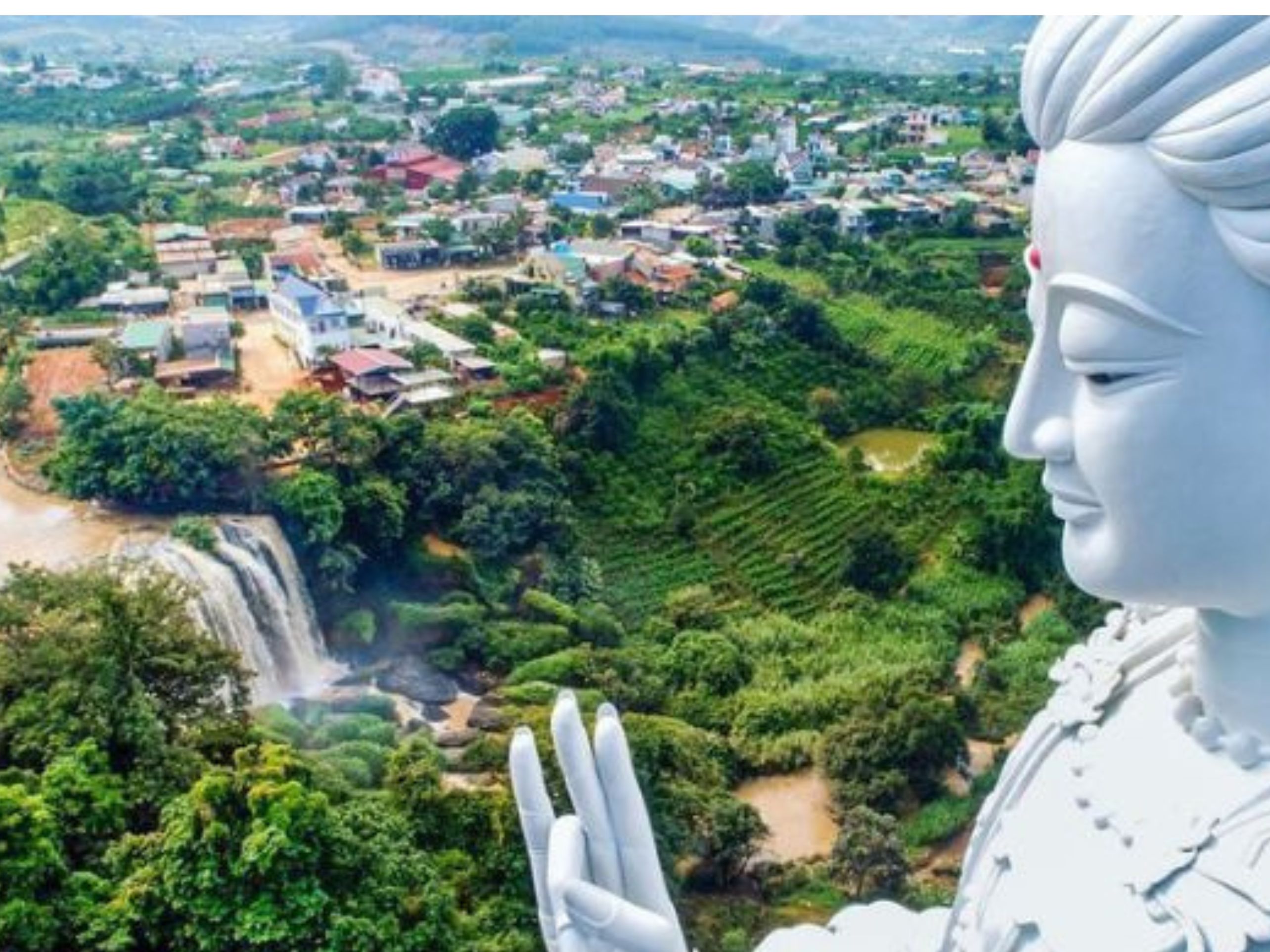 从大象瀑布看去,后面是越南最高的佛像