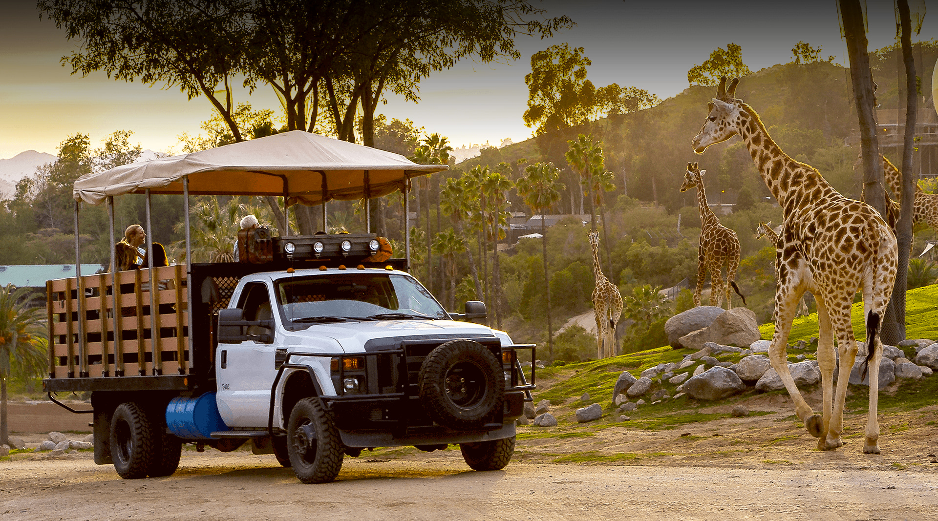 乘坐有顶棚的露天狩猎卡车后部,在专业导游的带领下,深入我们广阔的稀树草原栖息地。