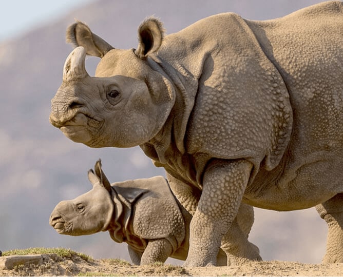 在圣地亚哥野生动物园观赏犀牛。体验他们的力量并了解保护工作。惊叹于它们在自然栖息地的美丽。访问期间不要错过这个机会。