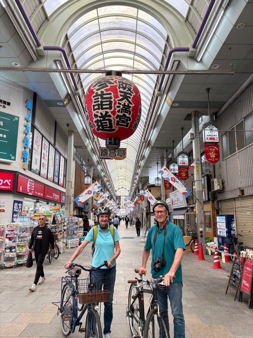 在天神桥筋六丁目站附近的自行车租赁处集合!不用担心在到达集合地点时迷路。我们将在天神桥筋六丁目站附近的自行车租赁处集合。前往美丽的大阪城,并在其周围骑自行车。大阪城位于一个非常大的公园(大阪城公园)的中央。面积约105公顷!骑自行车累了吗?让我们用一顿丰盛的午休来充饥吧。我们将稍事休息,品尝大阪的灵魂美食:御好烧。享受完御好烧后,我们将短暂参观日本最长的商店街天神桥筋,这条街全长 2.6 公里,拥有 600 多家商店