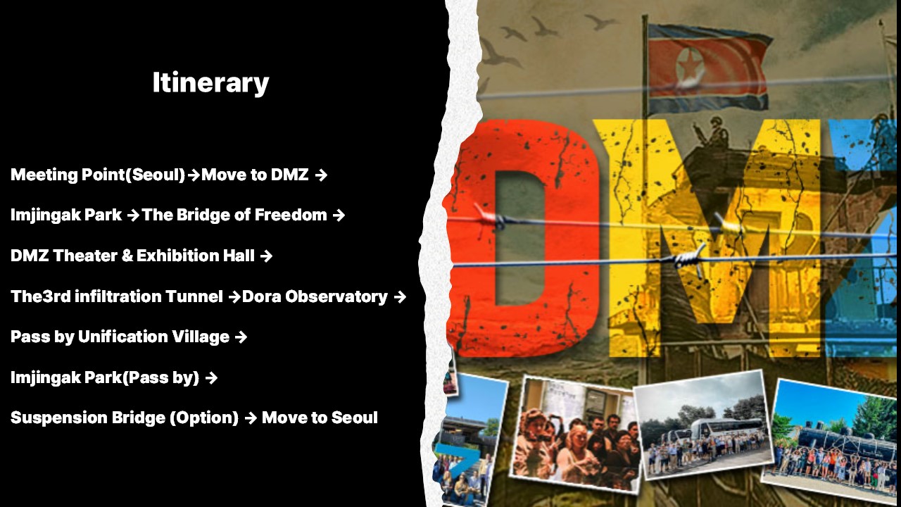 * **专家指导**:在 Ron Han 和 SP Hong 等知名导游的带领下,通过详细的解释和个人轶事体验 DMZ,确保您获得一次有教育意义且难忘的访问。