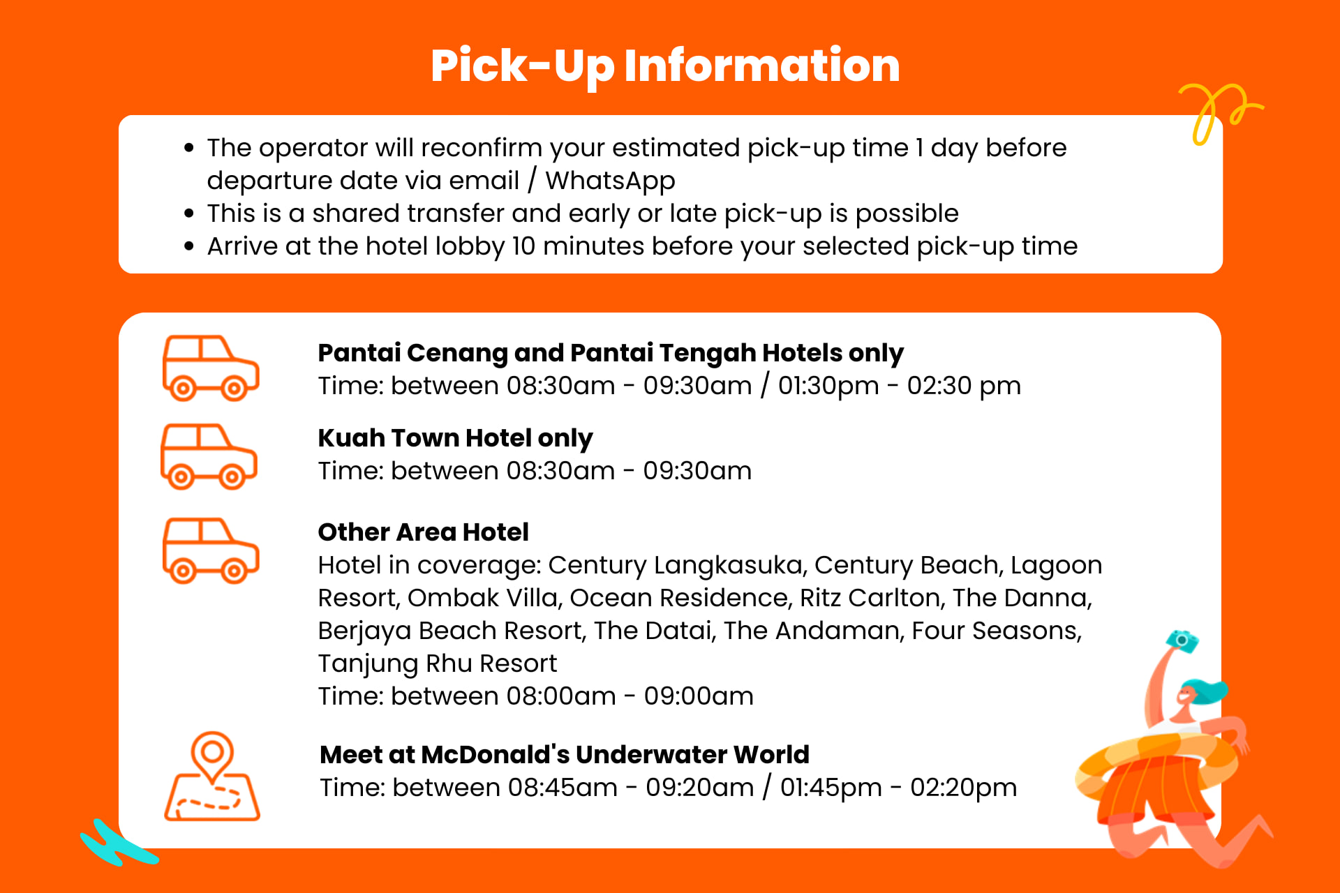 探索免税岛兰卡威附近风景如画的岛屿,在沙滩上放松身心,发现奇妙的海底世界! 可提供珍南海滩、中央海滩、瓜镇或其他地区的酒店接送服务。