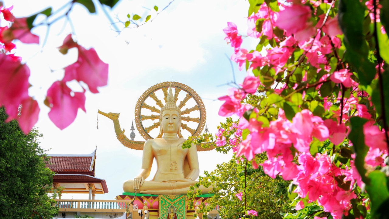 雄伟的金色雕像俯瞰苏梅岛,大佛提供令人惊叹的全景