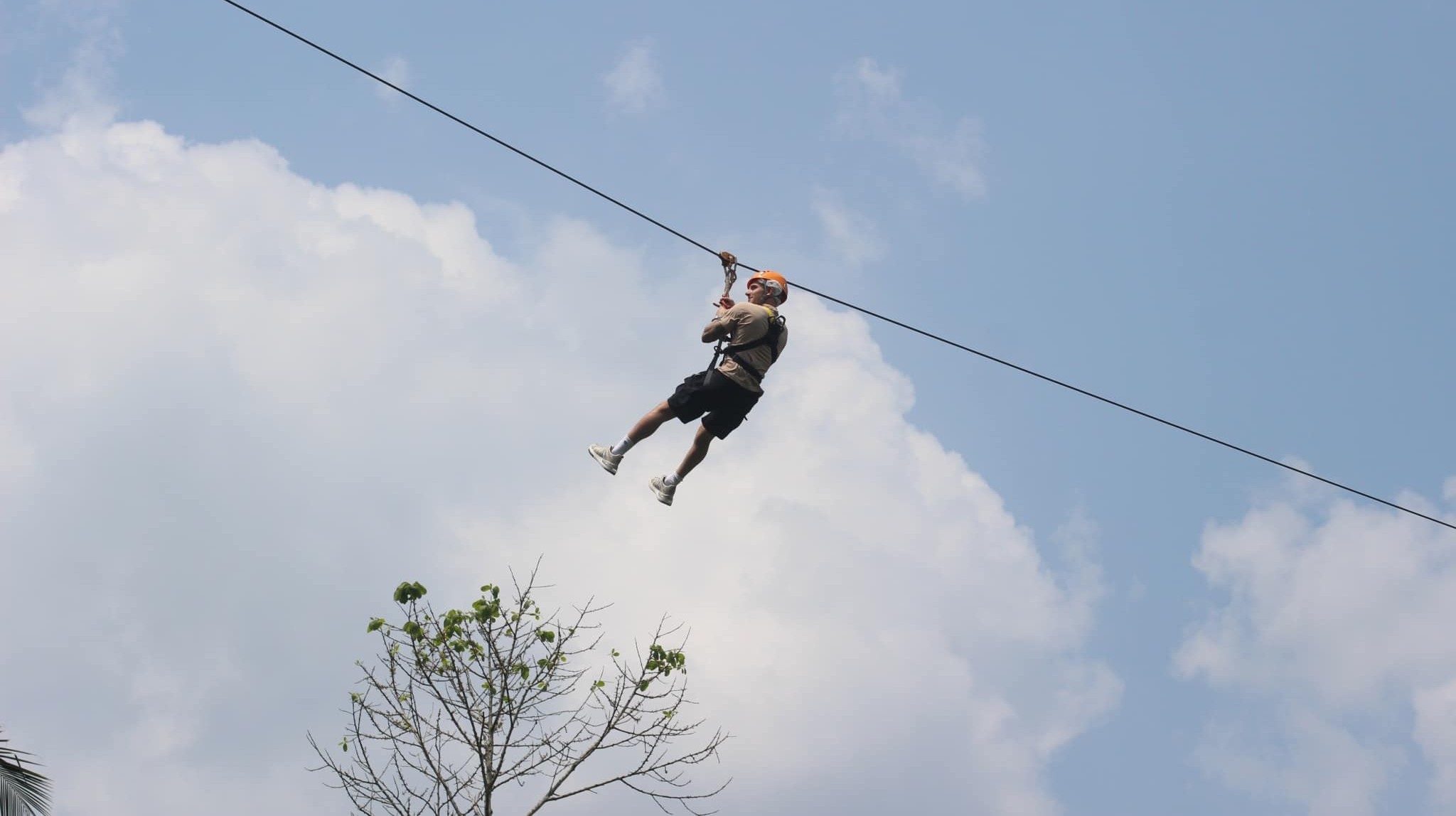 在苏梅岛茂密的丛林中期待一次惊险而难忘的冒险。乘坐一系列令人兴奋的滑索飞过树顶,欣赏热带环境的壮丽景色。穿越令人兴奋的索桥和高空平台,为体验增添额外的兴奋元素。专业导游确保您的安全并提供专家帮助,滑索冒险适合所有年龄段和技能水平。准备好踏上充满刺激、自然之美和难忘回忆的肾上腺素飙升之旅吧。