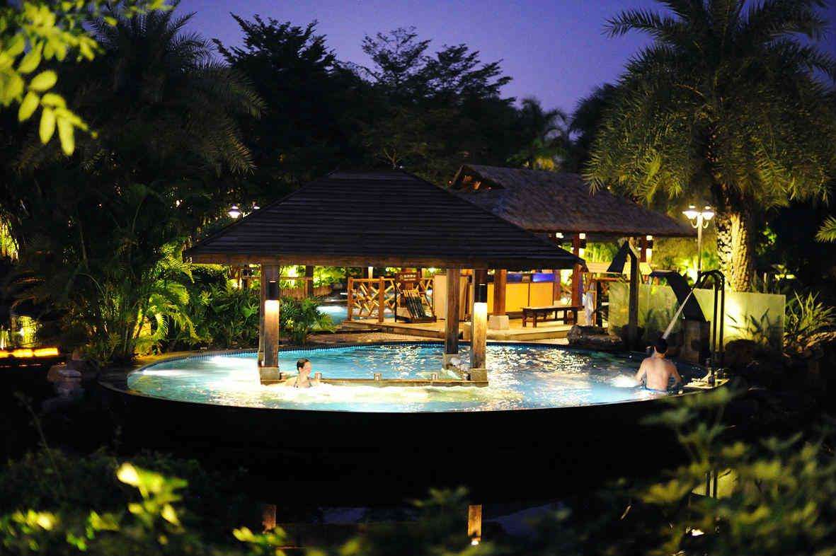 厦门日月谷温泉内设有荷心洲大型水疗池,各种不同力道的温泉水将给你身体做一次全方位的水中按摩