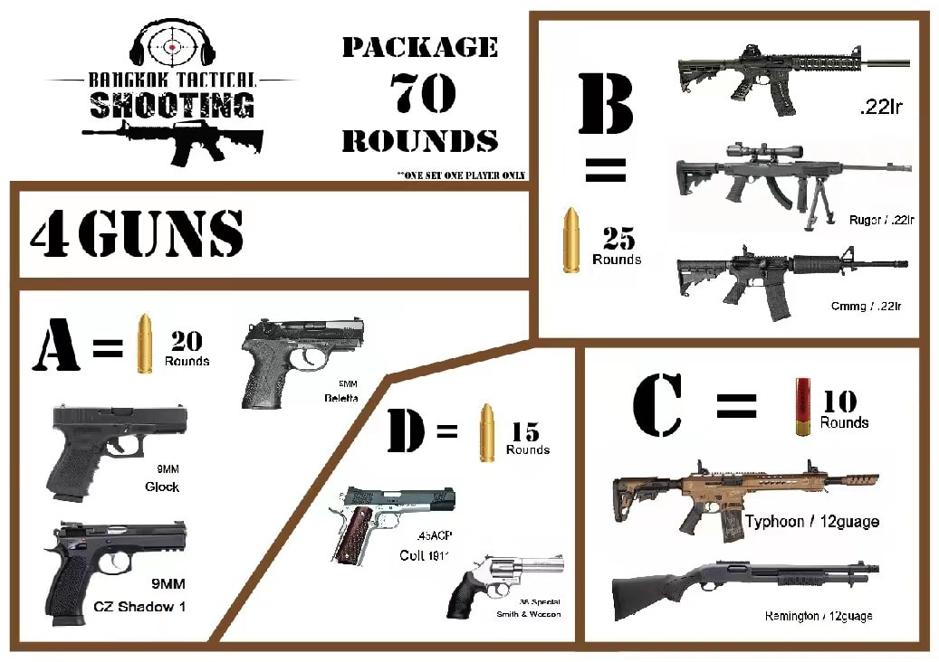 体验曼谷战术射击的刺激体验。在专家的监督下深入探索枪械世界。接受全面的安全培训,并选择从手枪到步枪等多种武器进行射击。在受控且安全的环境中进行打靶练习,精确磨练您的射击技巧。这项独特的活动提供充满肾上腺素的冒险,同时优先考虑安全和专业指导,确保在曼谷享受难忘且负责任的拍摄体验。