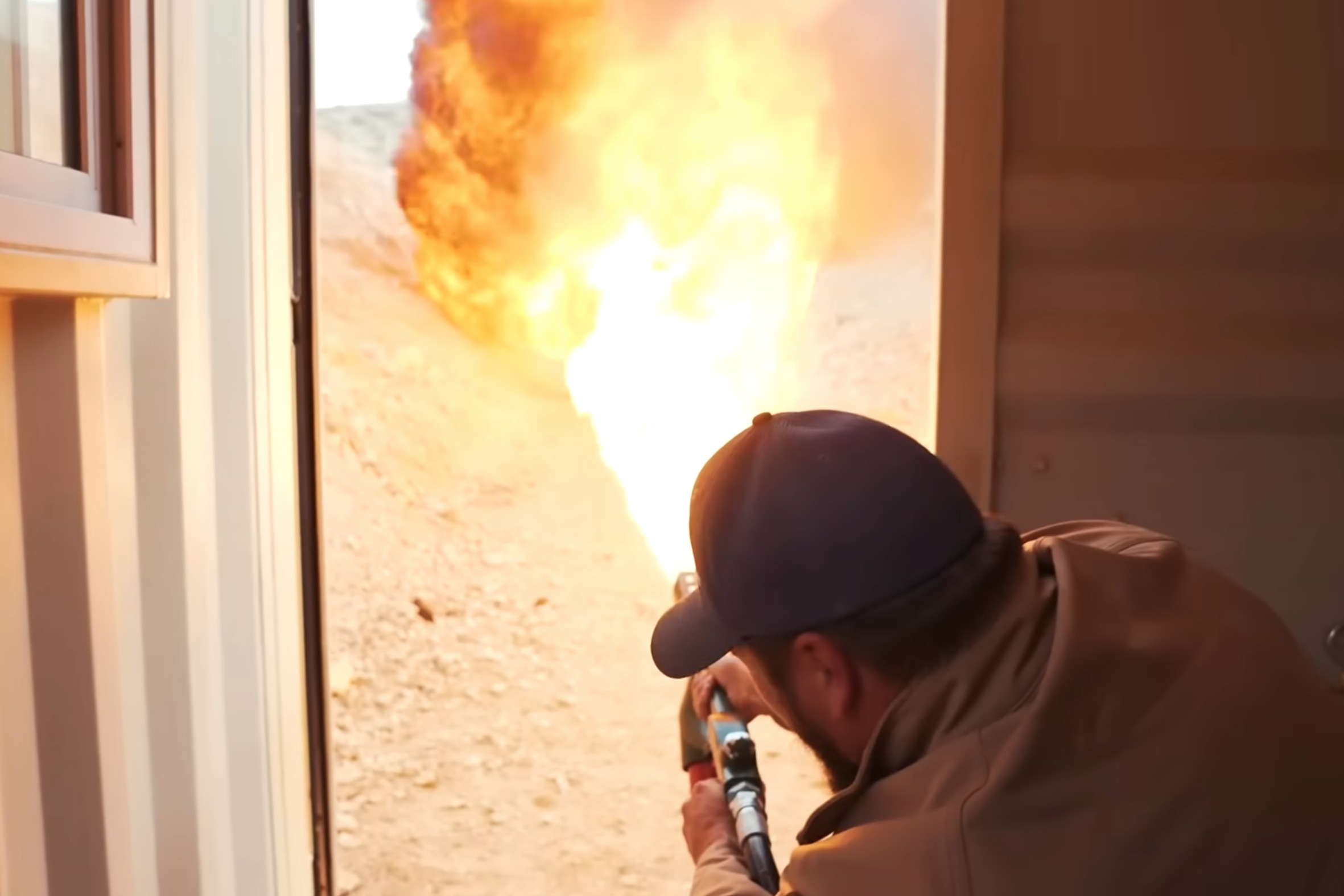 射击火焰喷射器模仿骑牛的 8 秒惊险刺激
