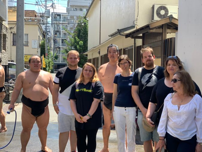 如果幸运的话,相扑力士会在练习结束后与您合影。