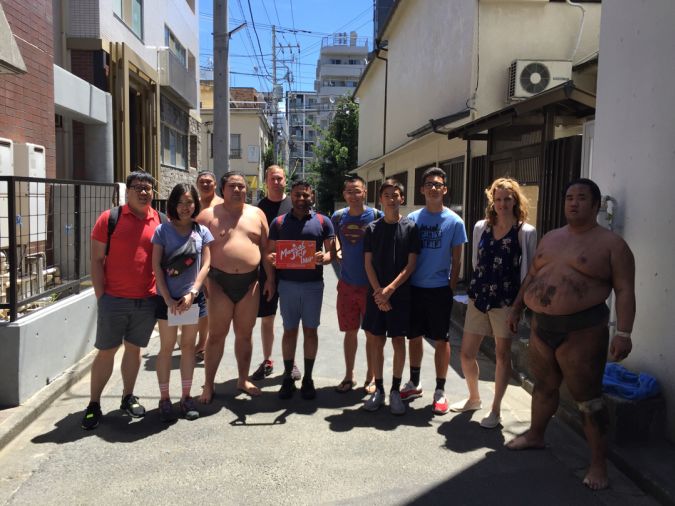 [与相扑选手合影] 独家观看相扑晨练
