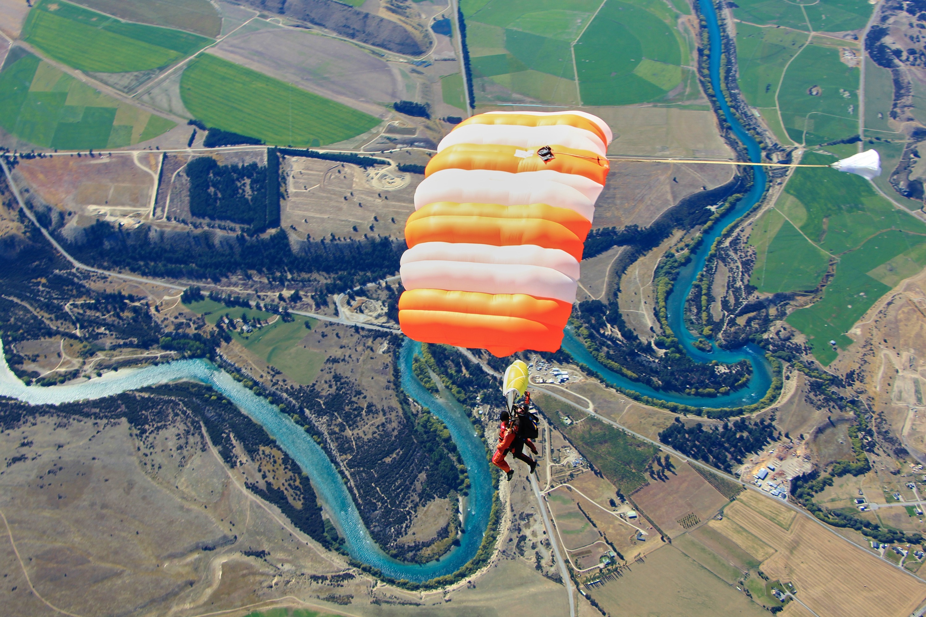 瓦纳卡跳伞体验,让你一次满足所有愿望:自由落体的刺激、山脉美景的震撼,以及专业教练的安心保障。搭乘交通接送前往瓦纳卡机场,登上飞机,飞往跳伞区域。与专业教练会面,听取安全说明,穿戴好安全装备,准备一跃而下。跳伞高度有3种选择:9,000英尺(2,743公尺)、12,000英尺(3,657公尺)或15,000英尺(4,572公尺)。飞行速度可达每小时200公里,约1分钟的自由落体后,降落伞将打开。飞行时,你可以闭上眼睛,但建议睁开眼睛,欣赏下方山脉的壮丽景色。 库克山、阿斯匹林山、南阿尔卑斯山、6个湖泊和克鲁萨河