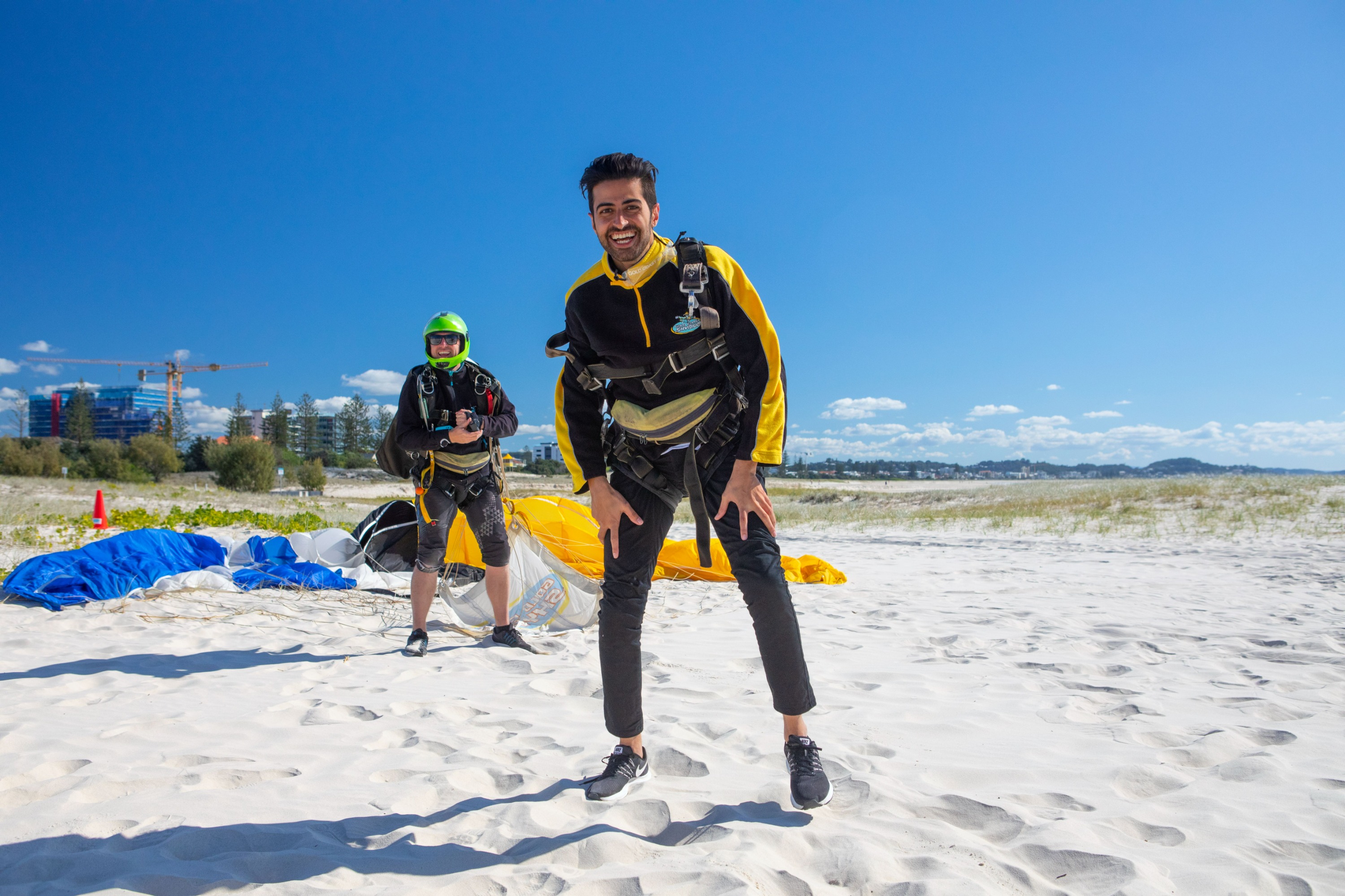 经过大约 45 秒令人肾上腺素激增的自由落体后,您的双人跳伞教练将打开降落伞,您将享受宁静的树冠飞行,同时欣赏黄金海岸的壮丽景色,然后降落在季拉海滩。