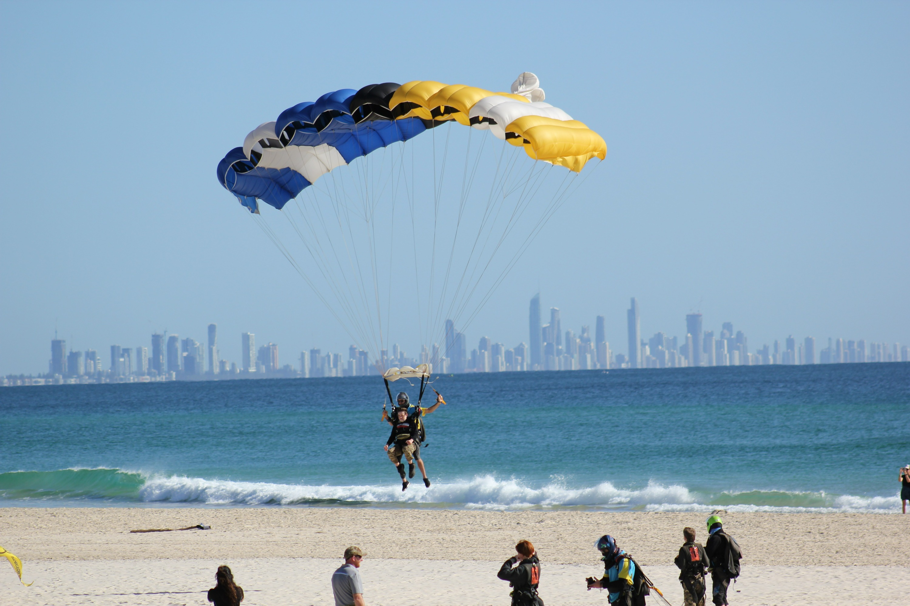 在黄金海岸迷人的海岸线上进行惊心动魄的双人跳伞冒险