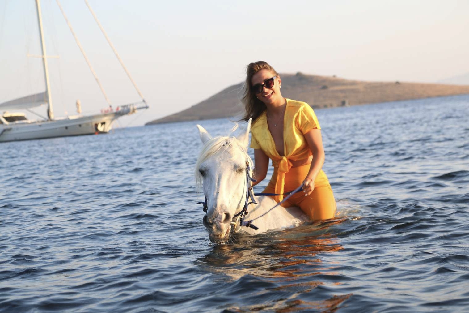 体验 1 小时 30 分钟的骑马,在河中畅游。之后,我们将送您回博德鲁姆并送您回酒店。